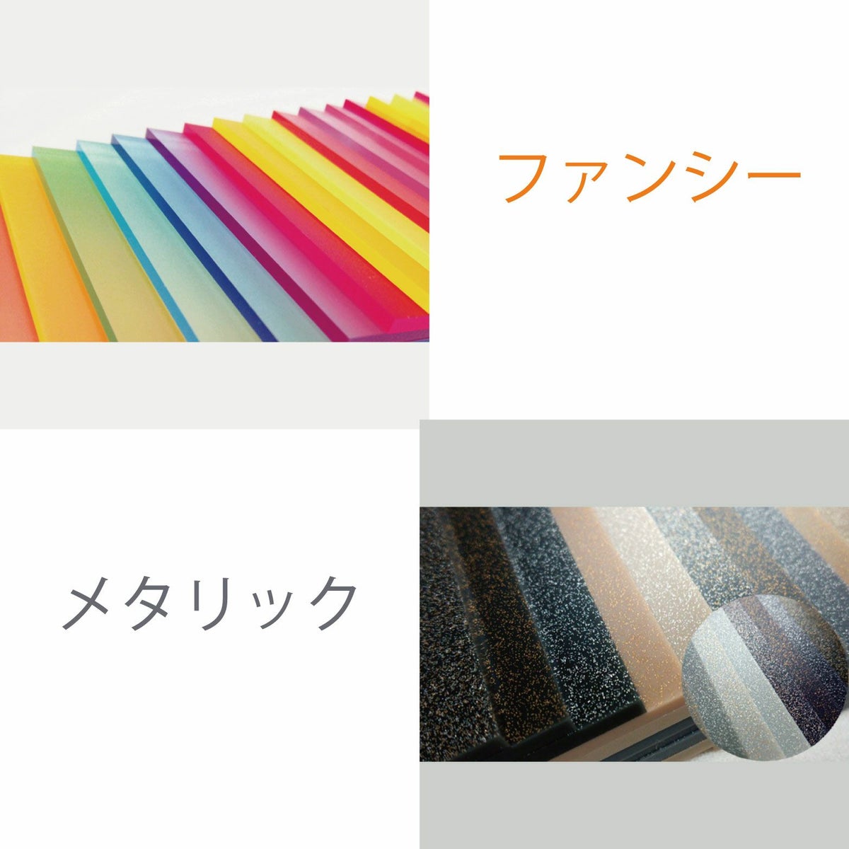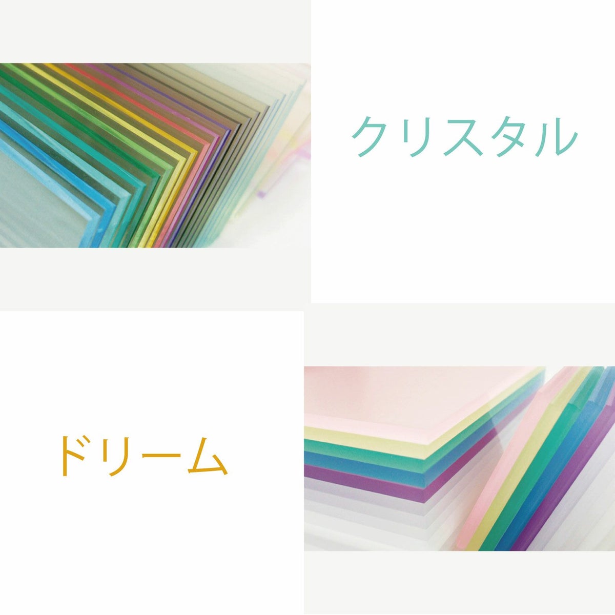 カラーはクリア・ガラスエッジ・オパール・ホワイト・グレー・ブラック・アイボリー・ブラウンのマットカラーのアクリル板を取り揃えております。
