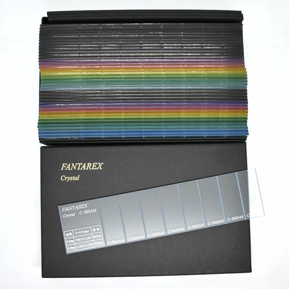 カラーはクリア・ガラスエッジ・オパール・ホワイト・グレー・ブラック・アイボリー・ブラウンのマットカラーのアクリル板を取り揃えております。