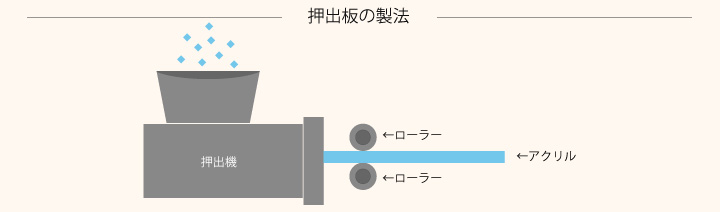 粘土状のアクリル樹脂をローラーで押出して製造されます。