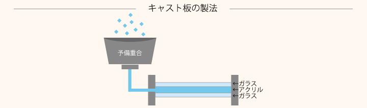 2枚のガラスの間にアクリル樹脂を流し込み、硬化させて製造されます。