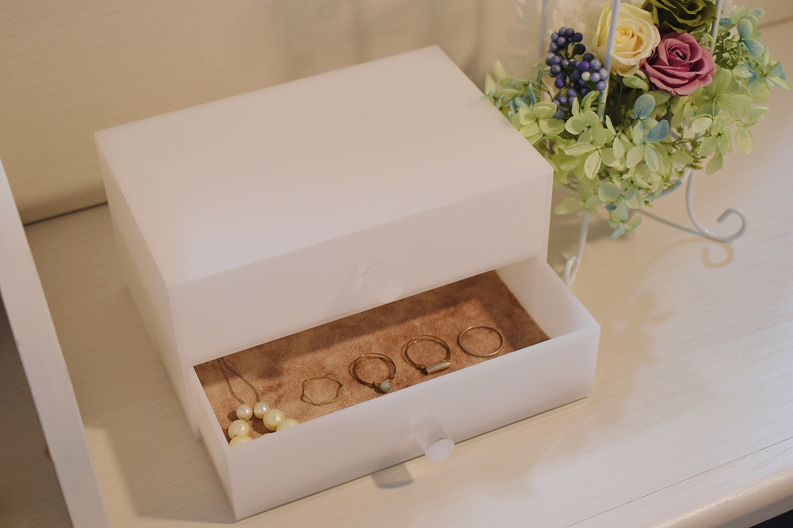 DIYでよく使用される木材や布等には無いアクリルならではの透明感が上質さを演出します✧