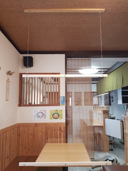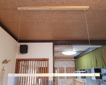 追加でお客様のDIYにより、木枠を取り付けて頂き、吊り下げパーテーションとして設置して頂きました。