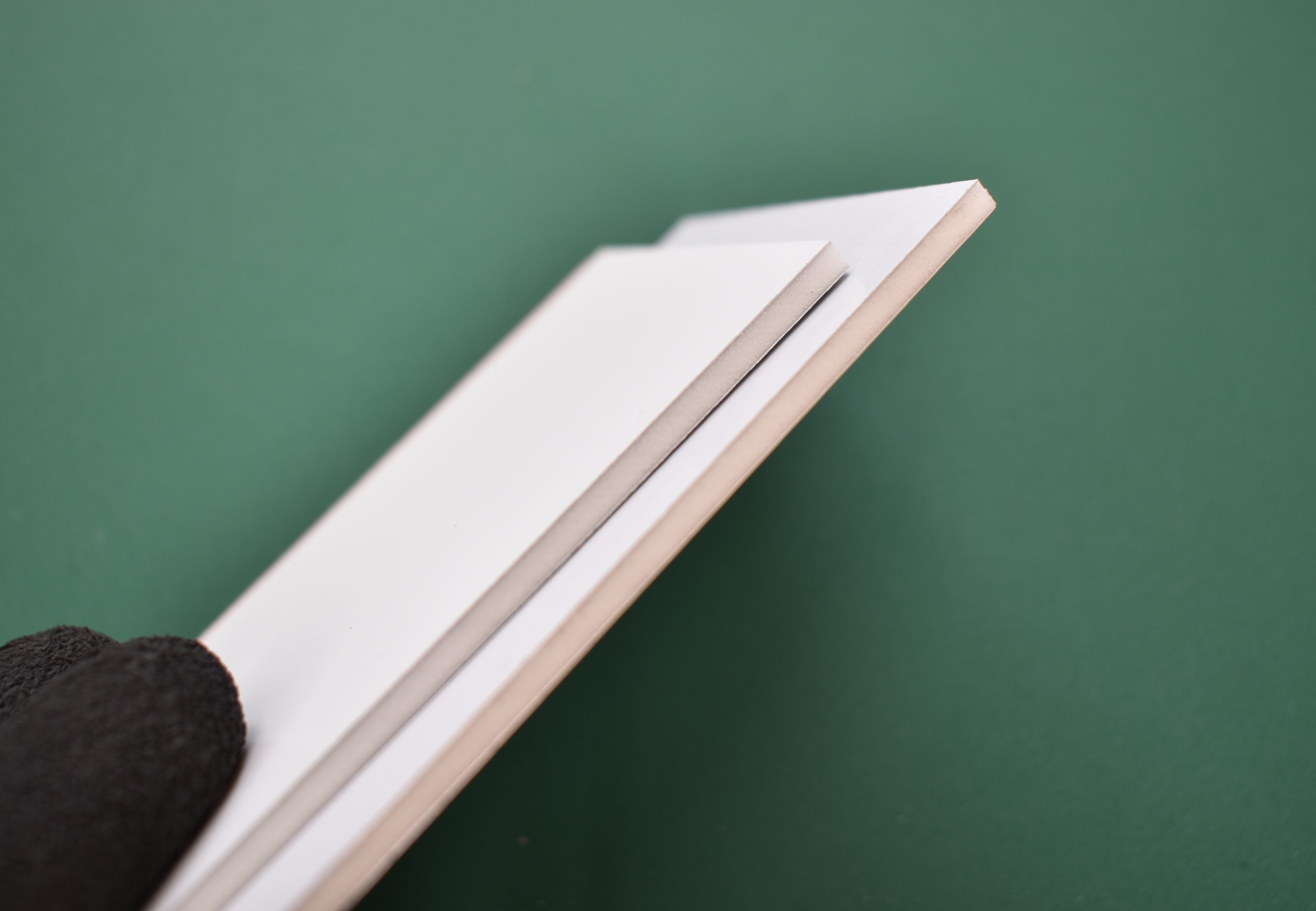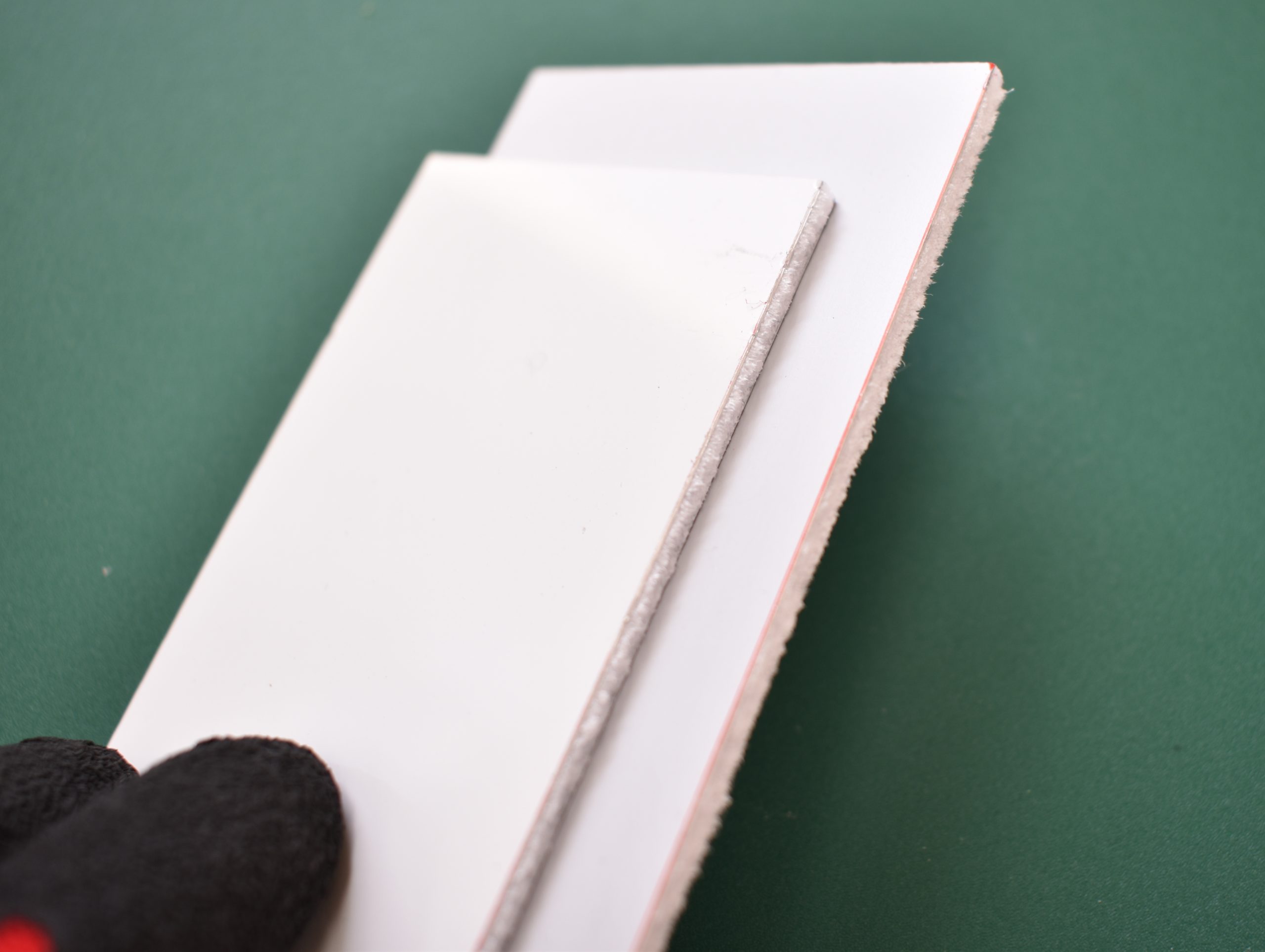 専門業者にカットを依頼した場合は必要ありませんが、上記のカットの部分でも少し触れたように市販のカッターナイフなどでカットした場合、バリやカエリなどが発生するため、小口で手指を切ってしまわないようにヤスリがけなどをしてなめらかにする必要があります。