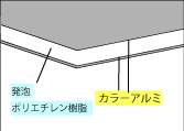 下記の断面図のように、上からカラーアルミ→発泡ポリエチレン樹脂→カラーアルミの順番に重なった仕様の素材です。